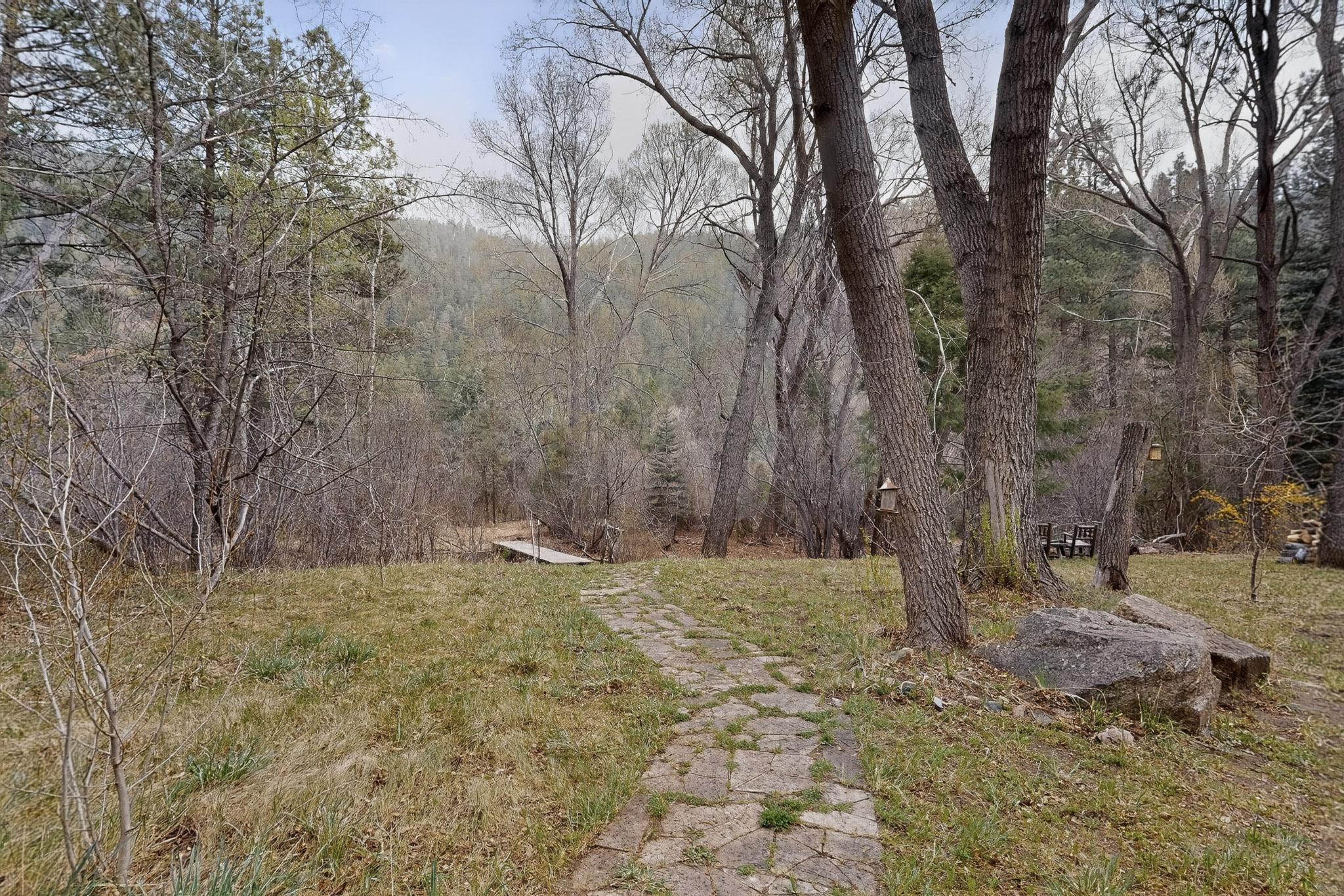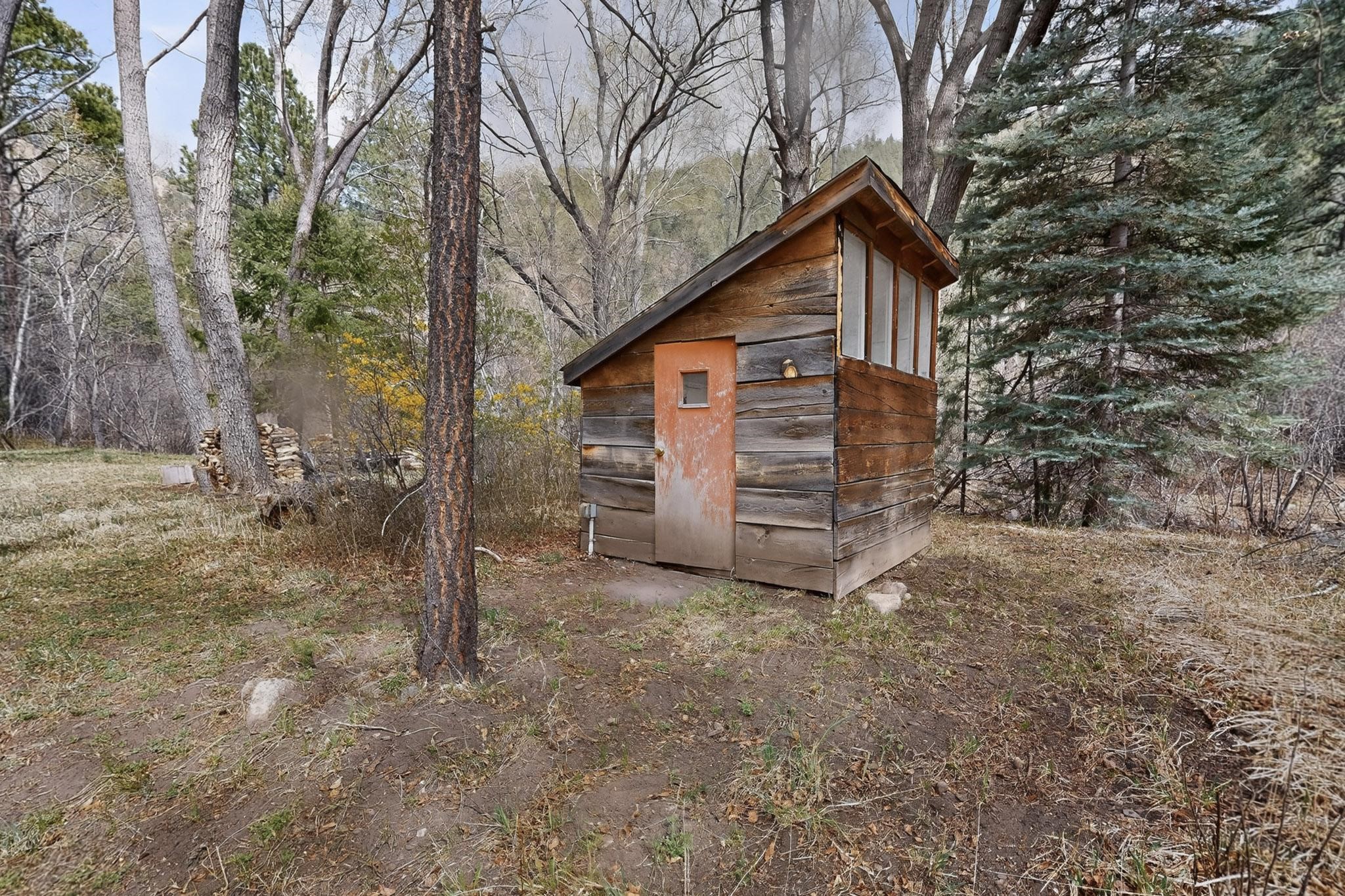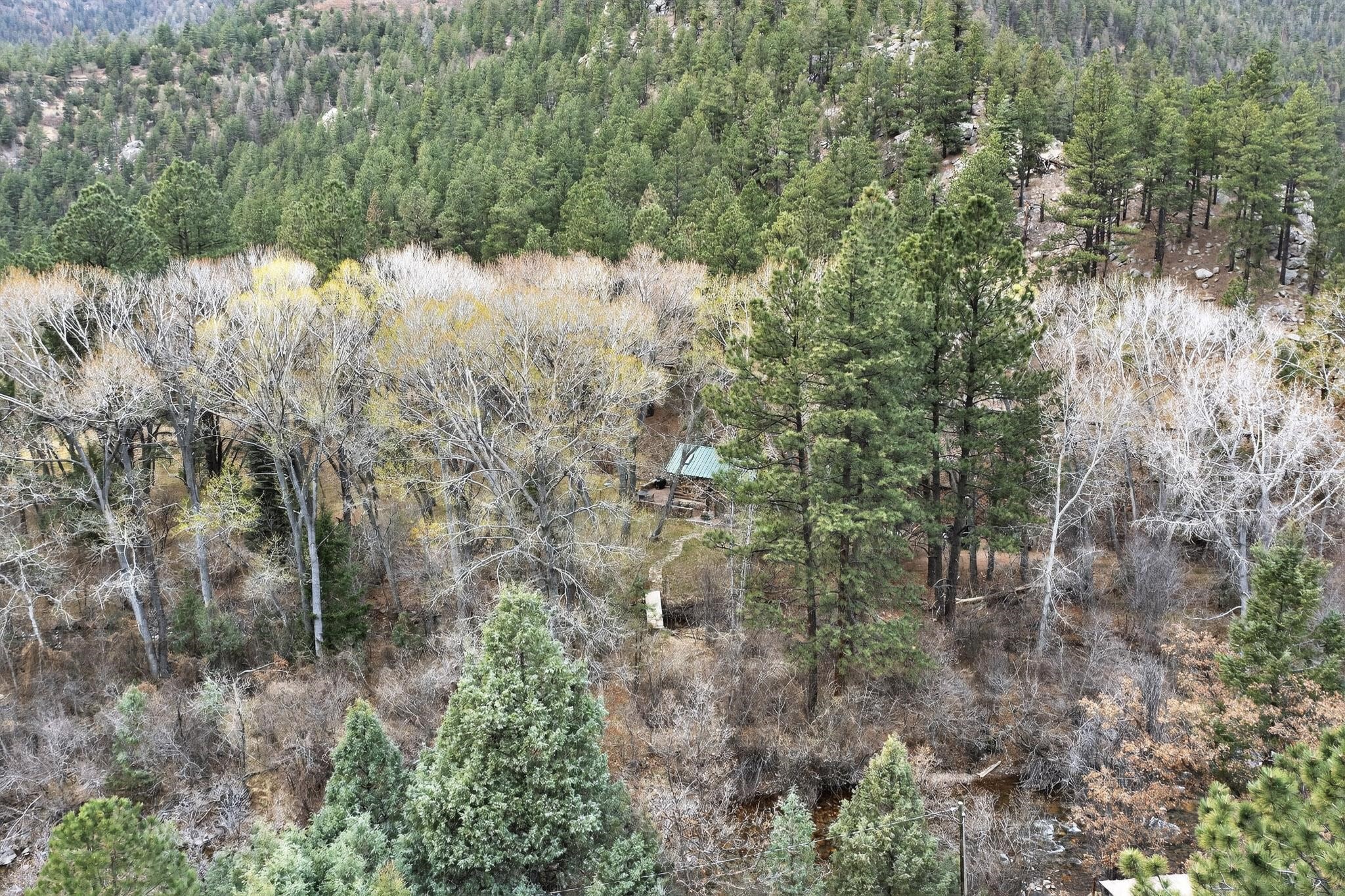 Adorable Storybook log cabin located on 360 +/- feet of Pecos River frontage, 10 miles above the Village of Pecos immediately before Windy Bridge. Properties of this type and quality are rarely offered for sale. The cabin has been an AirB&B offering for a number of years and our sellers are conveying domain names: PecosRiverCabin and Cabin on the Pecos. The setting includes a beautiful meadow, wooded bosque, healthy ponderosa pine, cotton willow, spruce trees and a large portion of an island accessed from a sweet bridge. The Pecos river frontage is significant with several openings for fishing and rapids towards the north end of the lot. The log cabin is quite stunning with a pitched pro-panel roof, skylights, river rock foundation, patio walls, livingroom, country kitchen, 1 bedroom, 1 bathroom and a laundry area. Improvements include new furnace, wood burning stove, new washer & dryer, upgraded electrical panel with additional GFI's in kitchen and bath, Centurylink land line telephone, on demand hot water heater, WiFi repeater in the garden house bringing the internet throughout the yard and patio. There is a separate 8'2 1/2"x 8' bonus building with electricity, solid entry door and view windows. All of the furniture, furnishings, tools, gardening supplies needed for a country get-a-way or for an income producing recreational retreat will be included with the purchase. There is no Home owner's Association just State and County regulations. The adjoining area to the kitchen could work for an expansion of the cabin footprint. The site is frequented by wildlife: deer, turkeys, skunks, fox, raccoons and occasionally a bear. For folks seeking a one of a kind river front destination property, please consider 1 McFerrin Taylor Rd, Pecos Canyon.