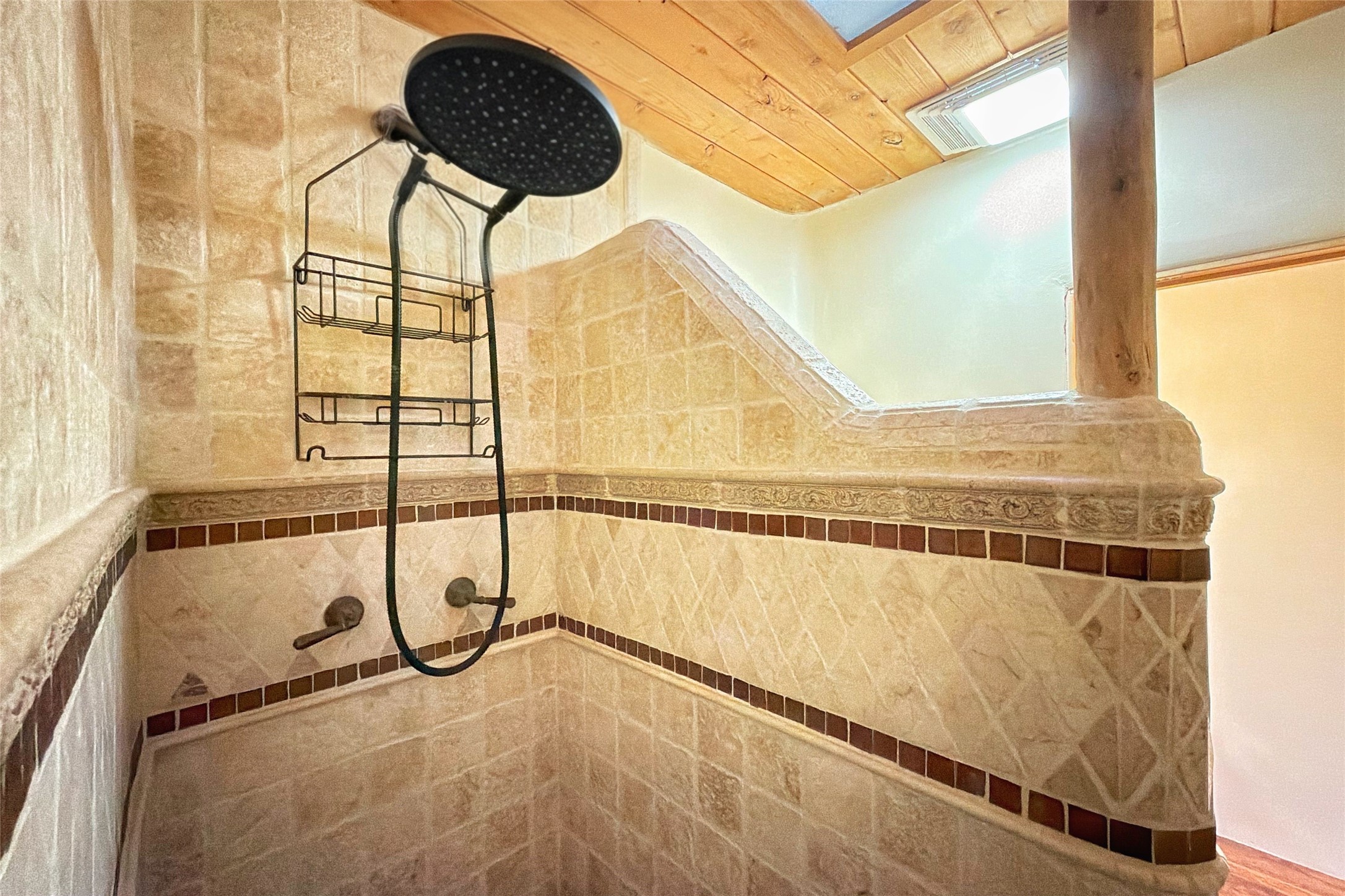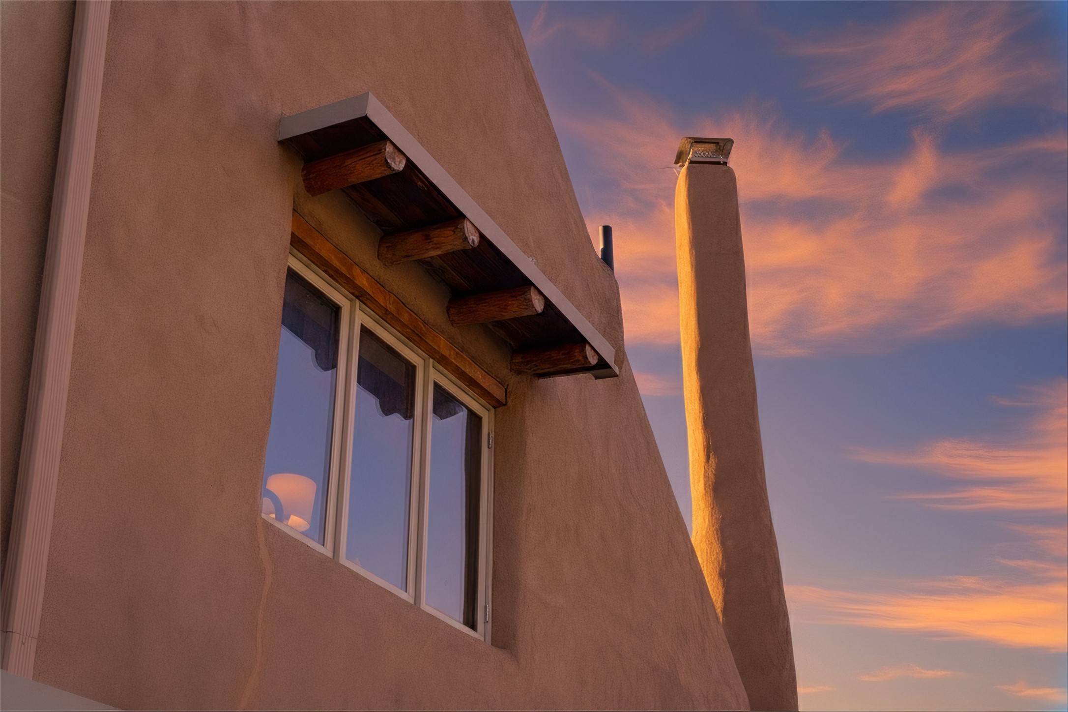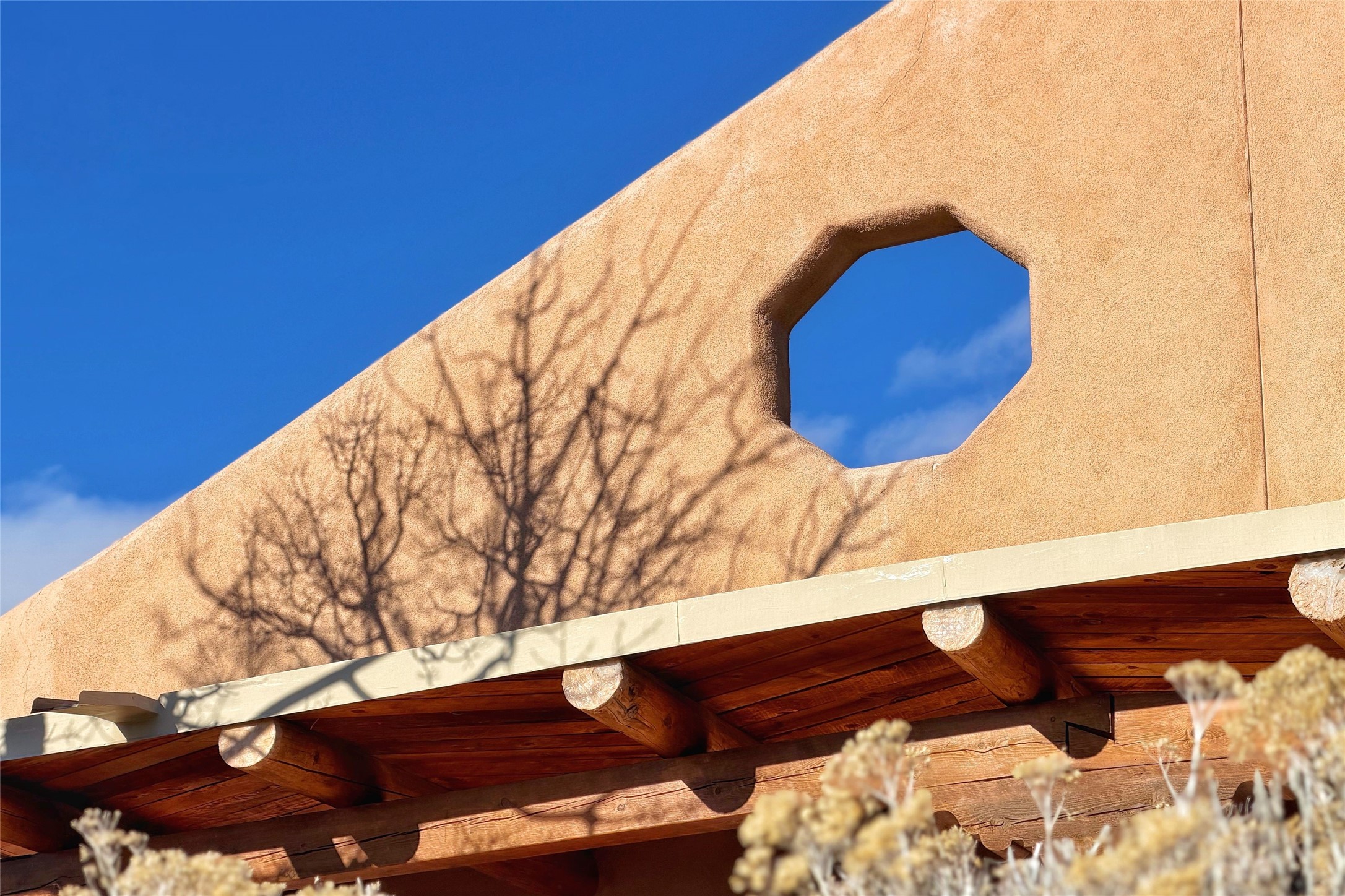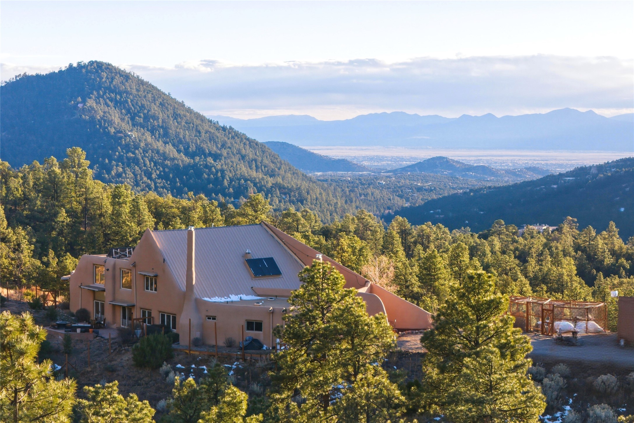 Sited atop a serene, tree-covered hillside, this one-of-kind mountain retreat offers an extraordinary blend of artistry, architecture, and natural beauty. Set on four expansive lots totaling approximately 78.38 acres, the property provides unmatched privacy, tranquility, and breathtaking views from every room.Crafted with timeless adobe construction, the home showcases stunning architectural details throughout, including exquisite hand-carved doors that reflect true craftsmanship and character. Each of the four spacious bedrooms features its own en-suite bathroom, creating a private retreat for residents and guests alike.Surrounded by unspoiled nature, this remarkable property is a haven for outdoor enthusiasts and creatives. Explore endless opportunities for hiking, wildlife watching, and peaceful reflection right outside your door. Evenings bring unforgettable sunsets and some of the brightest star-filled skies imaginable, offering a daily connection to the beauty of the natural world.Enjoy sweeping views of the Sangre de Cristo Mountains while still being conveniently located minutes from shopping/restaurants and just 16 minutes from the Santa Fe Plaza. Whether you're seeking seclusion, inspiration, or a luxurious escape, this exceptional property delivers a rare opportunity to own a true sanctuary in the high desert.