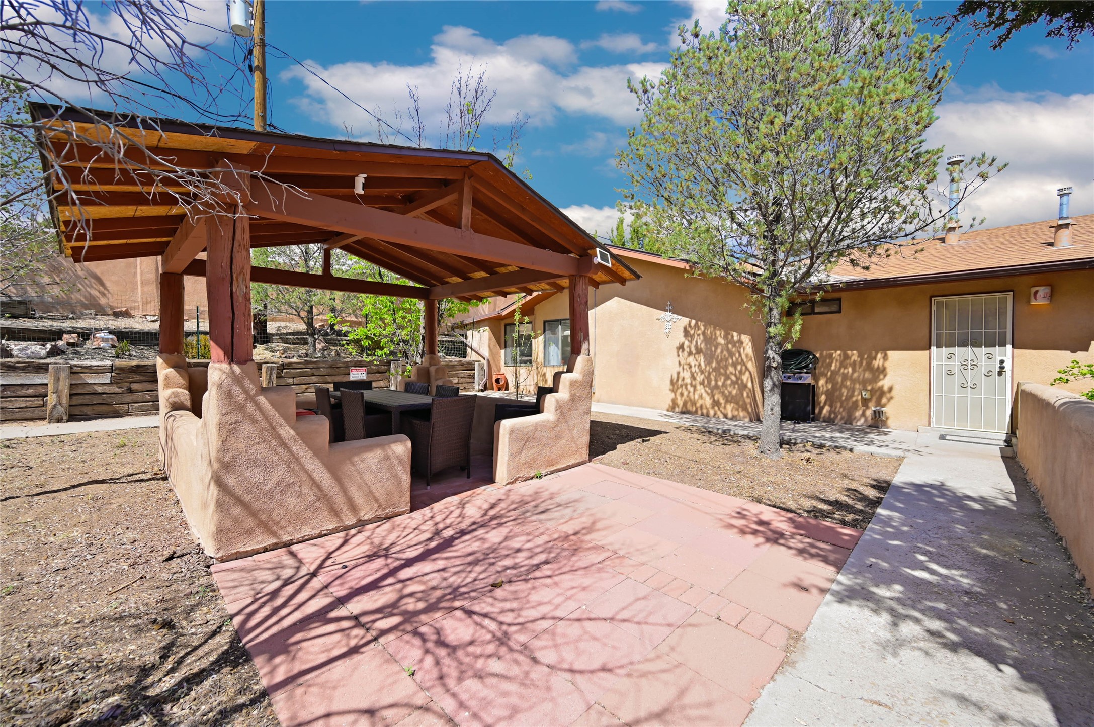 Ready to call home ia this charming, well-maintained residence nestled in a highly coveted West Alameda location. Situated on a generous .24-acre lot, this home offers the perfect blend of comfort and convenience, located just minutes from the vibrant energy of the historic Santa Fe Plaza.Built in 1997, this home features a thoughtful, functional floor plan. It offers three comfortable bedrooms and two full bathrooms, providing plenty of room for relaxation or a home office. Additionally, it has a spacious living room and formal dining plus a flex space for tv, family area or office. Gorgeous Vinyl plank flooring and tile for easy care. Newer forced air heat and cooling provide comfort year around.The very private back area offers your own private retreat highlighted by a lovely pergola, perfect for enjoying Santa Fe's legendary seasons, hosting summer barbecues, or simply unwinding in your own peaceful oasis.Additional features include a one-car garage, offering secure parking and extra storage space.Don't miss the opportunity to own a piece of Santa Fe in such a desirable, accessible location. This home is ready to call your own. 1031 Exchange transaction with no effect on buyer.