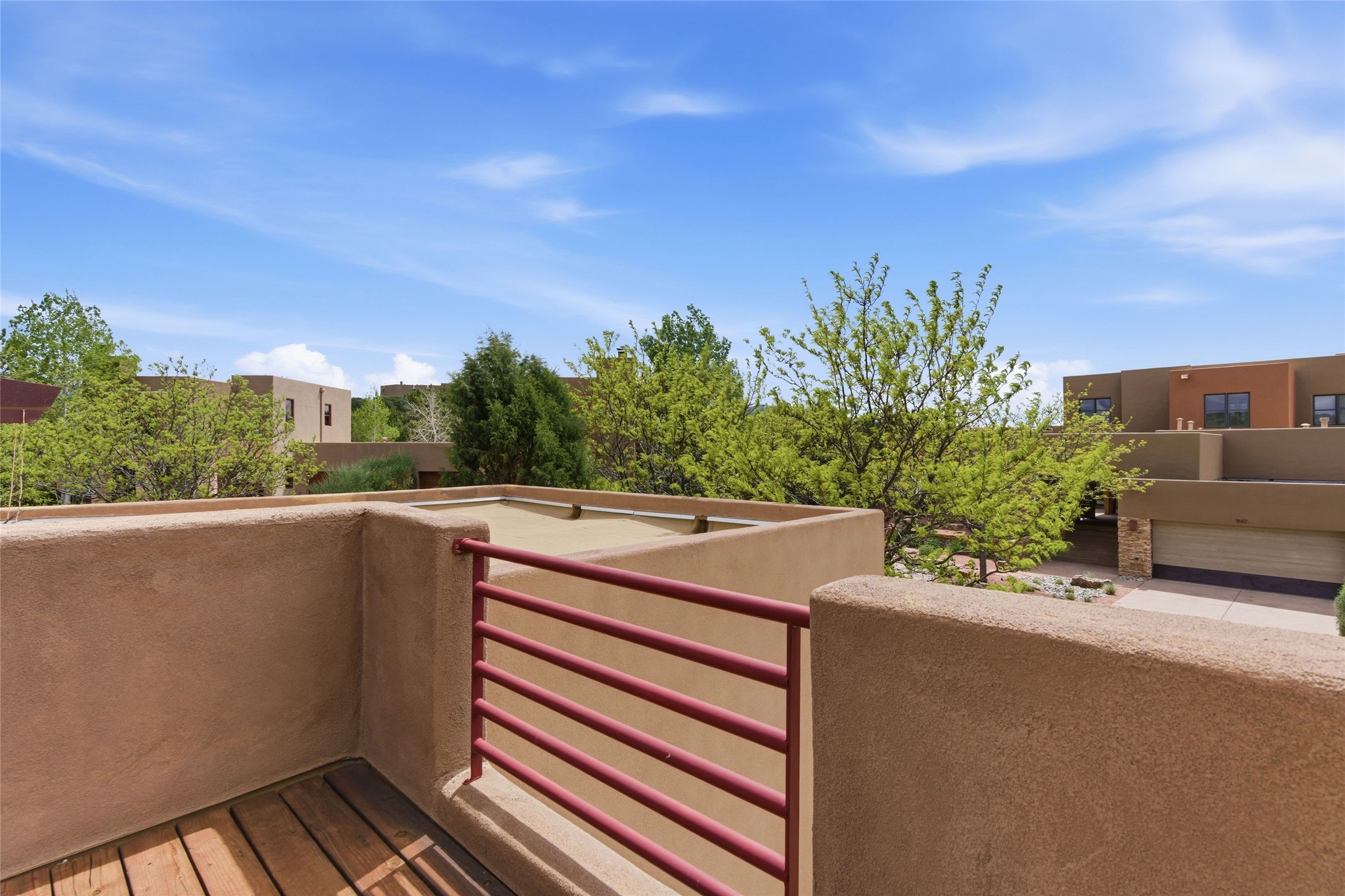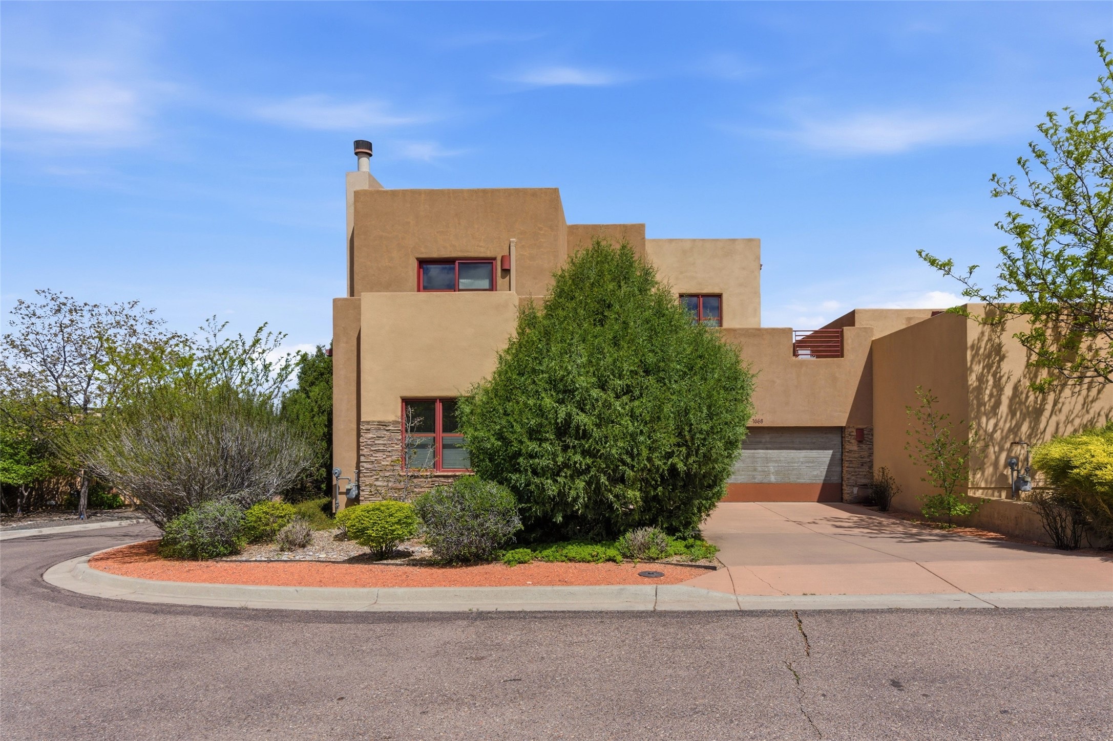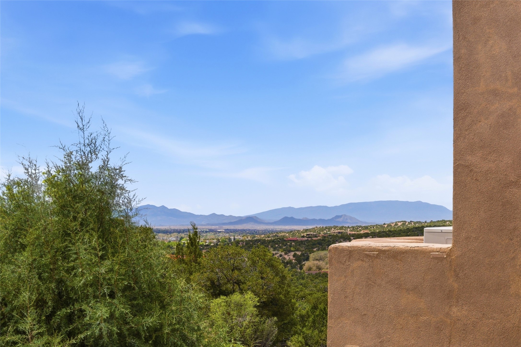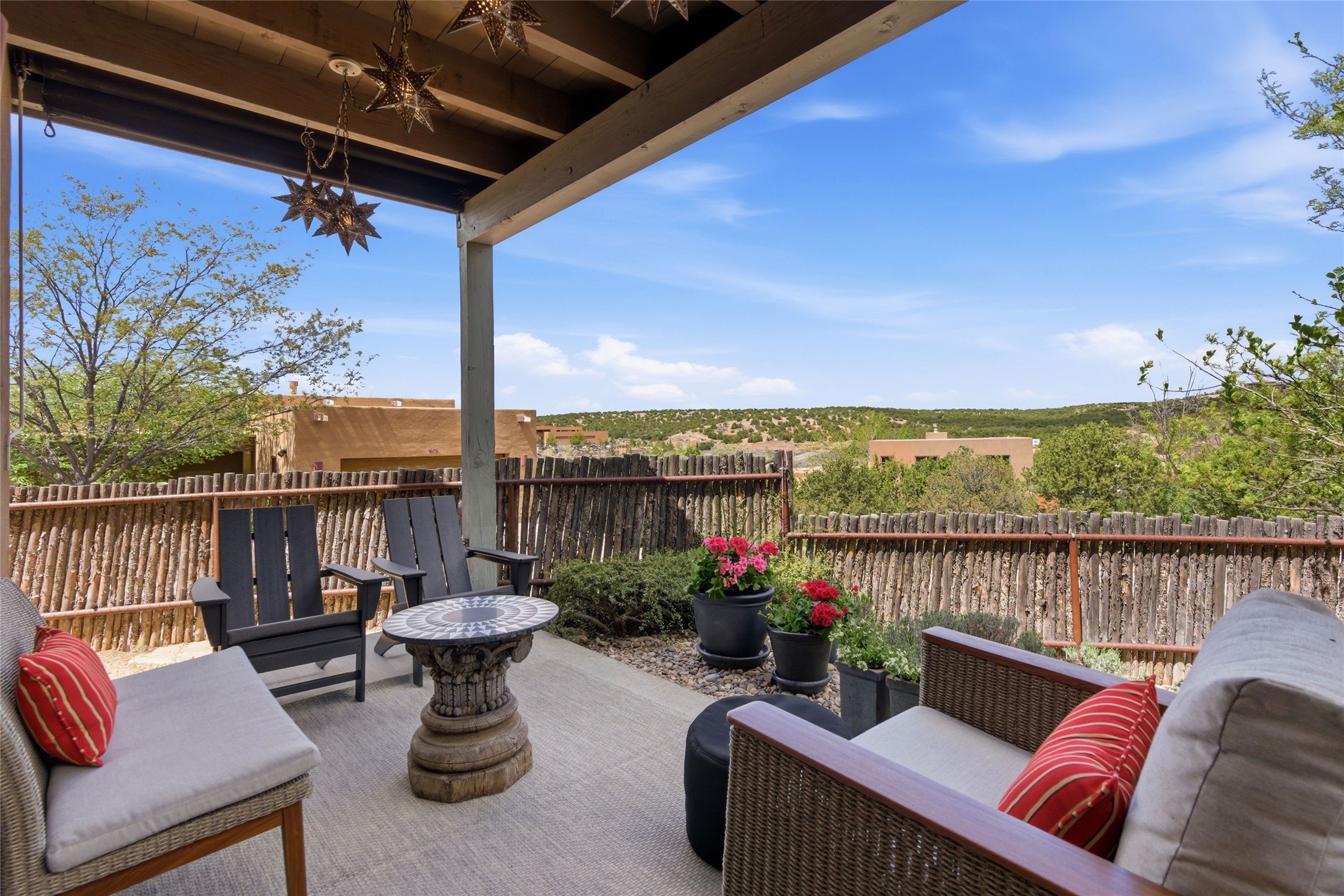 Located in the desirable Las Estrellas neighborhood on Santa Fe's northside, this exceptional home offers panoramic mountain and city views from a premium corner lot at the end of a quiet cul-de-sac. This light-filled, lock-and-go home features an open, airy floor plan with seamless flow between living, dining, and kitchen areas -- ideal for everyday living and entertaining.This nicely landscaped, shady backyard is fully fenced for pets and perfect for outdoor gatherings. Originally a model home, it includes numerous upgrades such as custom-built-in bookshelves and two upper decks, one of which is a private rooftop deck off the primary suite with a walk-in closet and stunning Sangre de Cristo views.Recent improvements include a Mitsubishi ductless cooling and supplemental heating system, new stainless steel appliances, updated LED lighting and new window shades throughout the home. Residents enjoy a community park, paved paths and access to Santa Fe's extensive trail network.Peaceful yet convenient, this northside location is just minutes from the Plaza and DeVargas Mall with easy access to Los Alamos and Albuquerque, offering an exceptional blend of views, privacy and modern comfort.