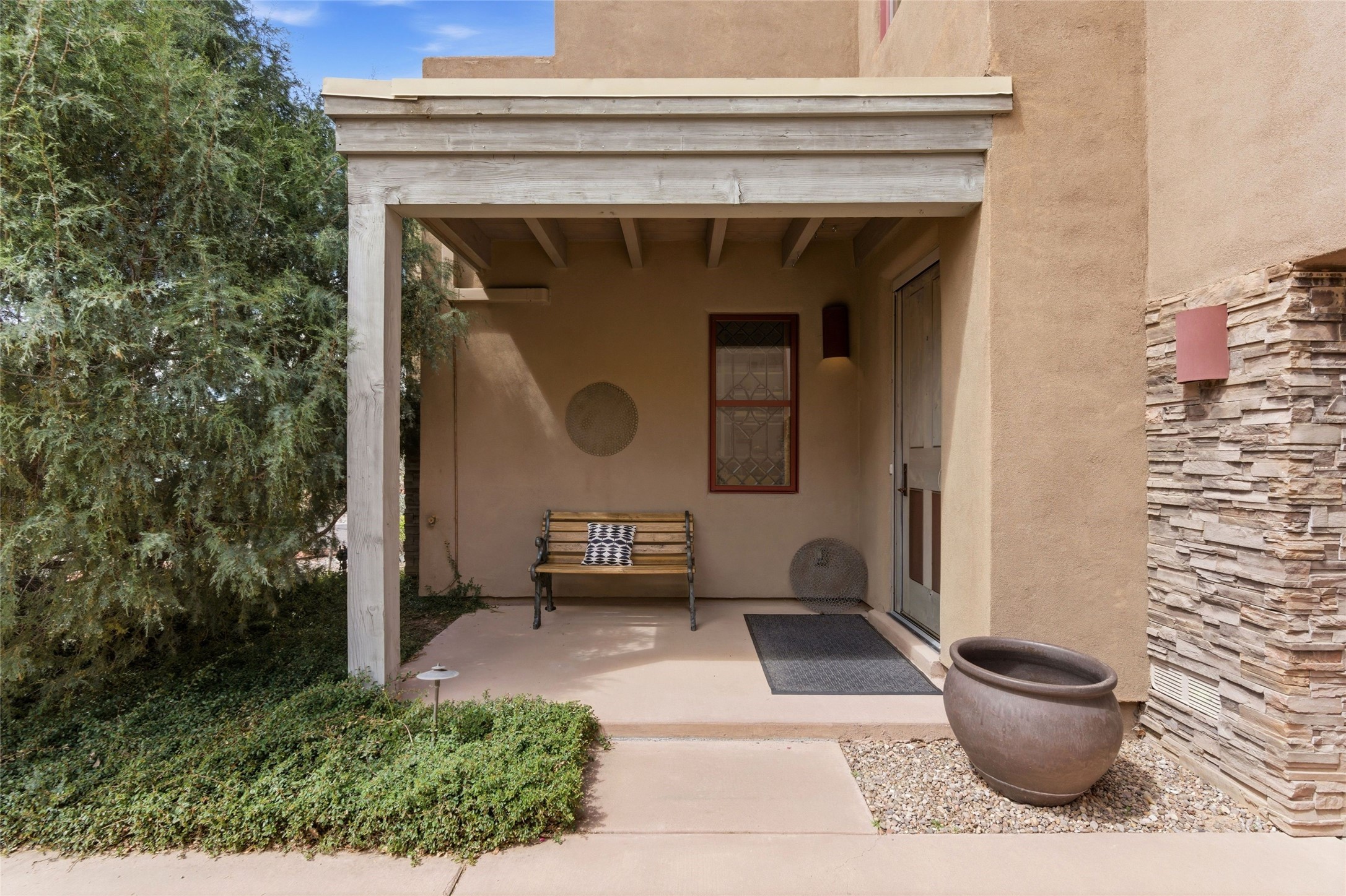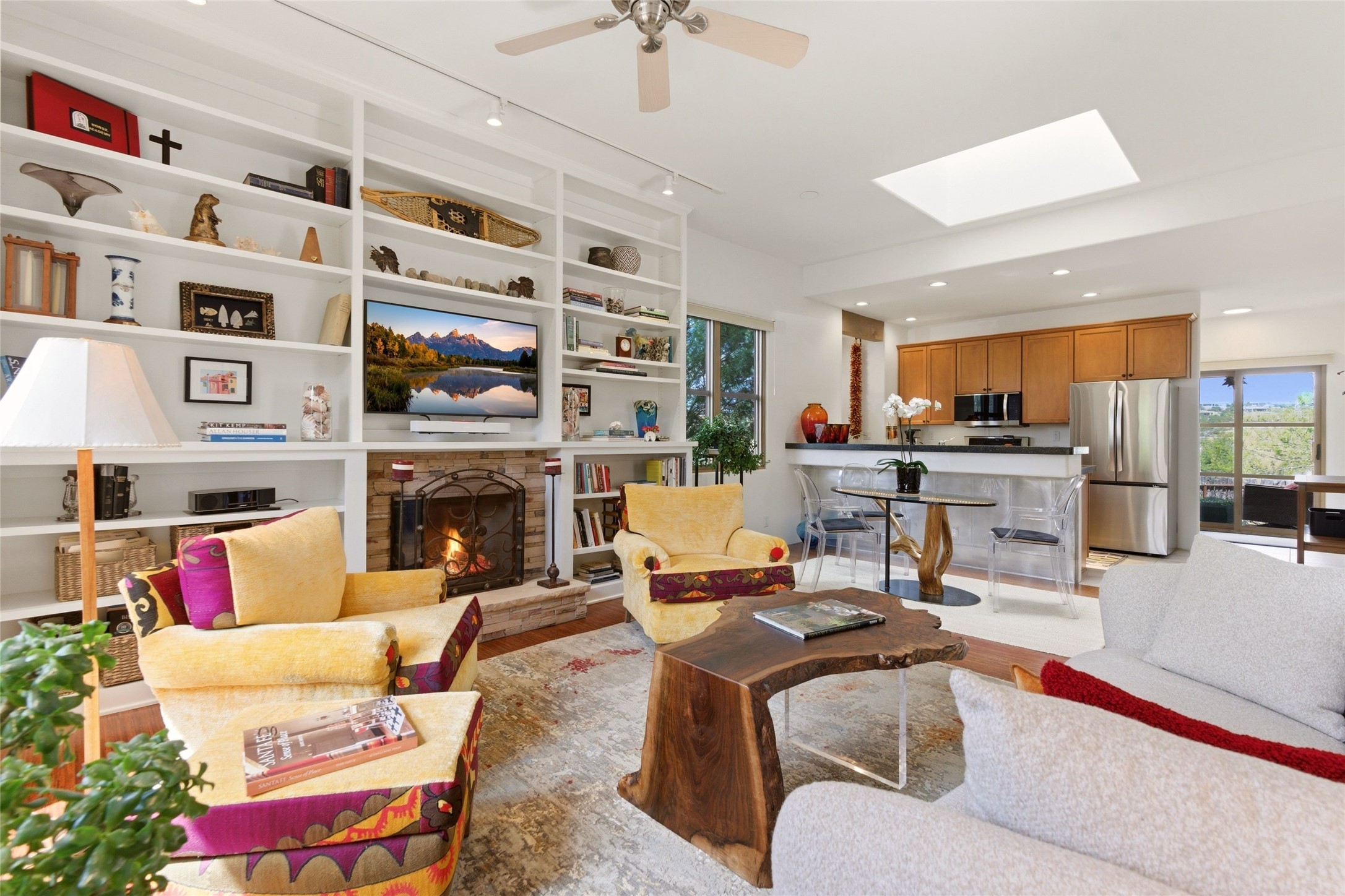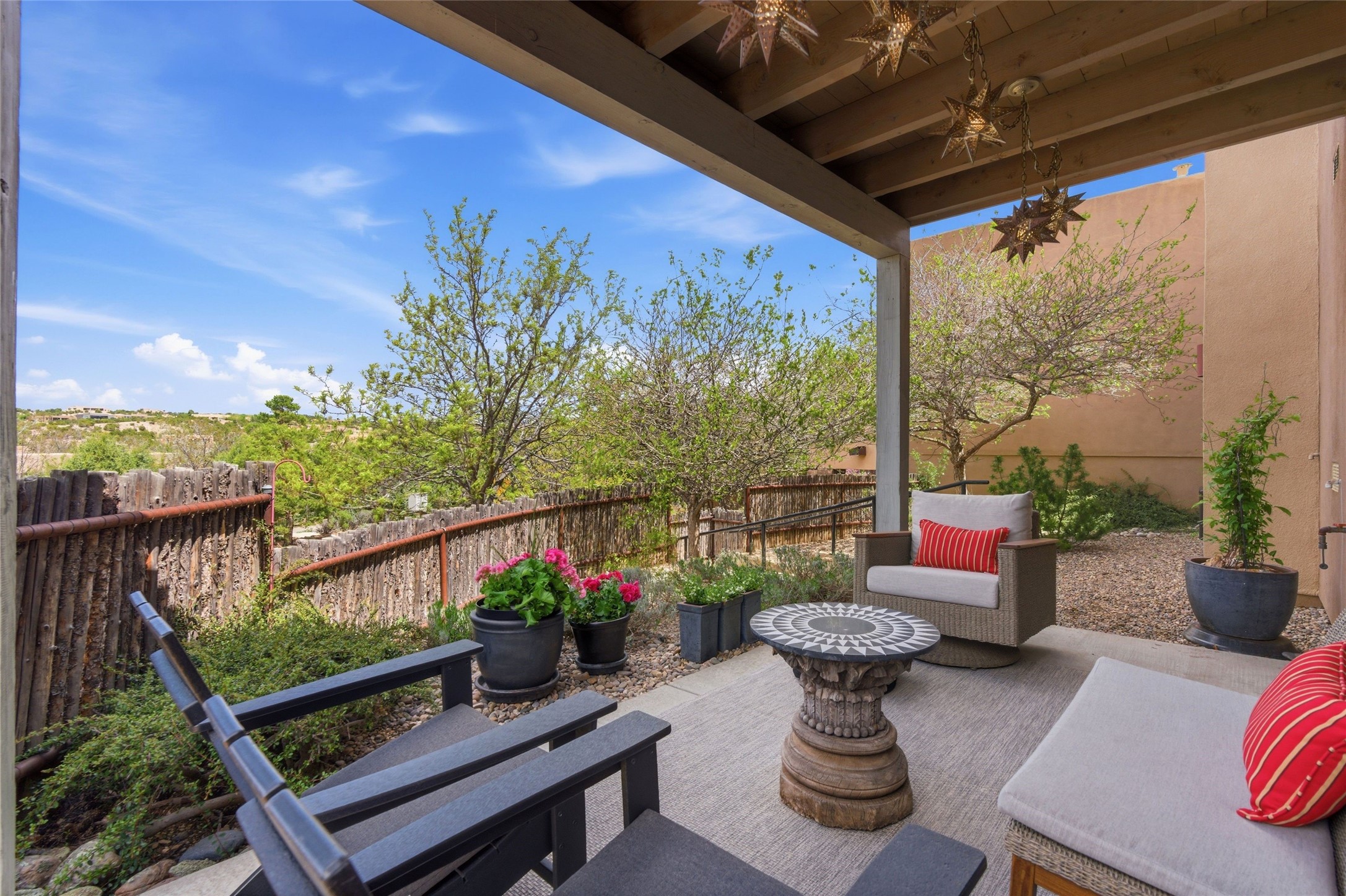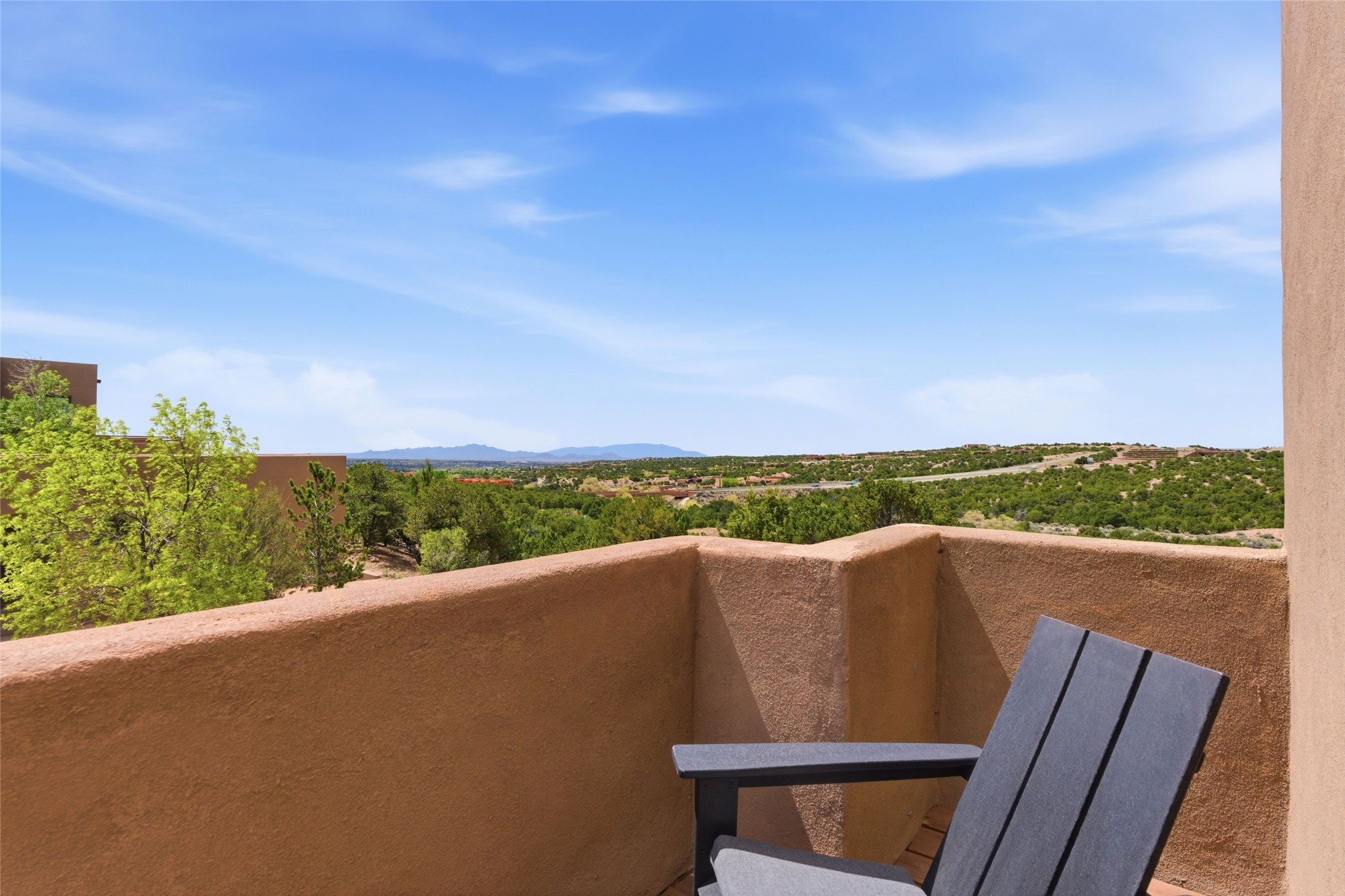 Located in the desirable Las Estrellas neighborhood on Santa Fe's northside, this exceptional home offers panoramic mountain and city views from a premium corner lot at the end of a quiet cul-de-sac. This light-filled, lock-and-go home features an open, airy floor plan with seamless flow between living, dining, and kitchen areas -- ideal for everyday living and entertaining.This nicely landscaped, shady backyard is fully fenced for pets and perfect for outdoor gatherings. Originally a model home, it includes numerous upgrades such as custom-built-in bookshelves and two upper decks, one of which is a private rooftop deck off the primary suite with a walk-in closet and stunning Sangre de Cristo views.Recent improvements include a Mitsubishi ductless cooling and supplemental heating system, new stainless steel appliances, updated LED lighting and new window shades throughout the home. Residents enjoy a community park, paved paths and access to Santa Fe's extensive trail network.Peaceful yet convenient, this northside location is just minutes from the Plaza and DeVargas Mall with easy access to Los Alamos and Albuquerque, offering an exceptional blend of views, privacy and modern comfort.
