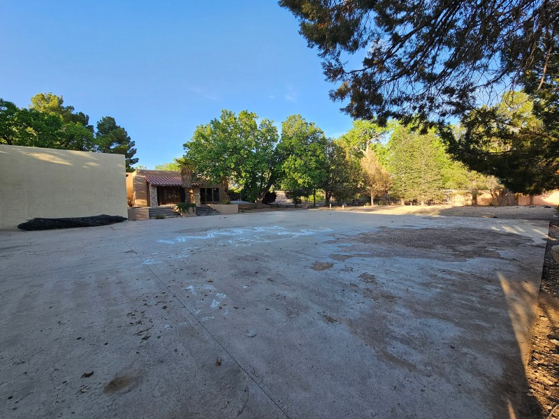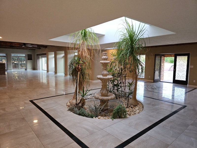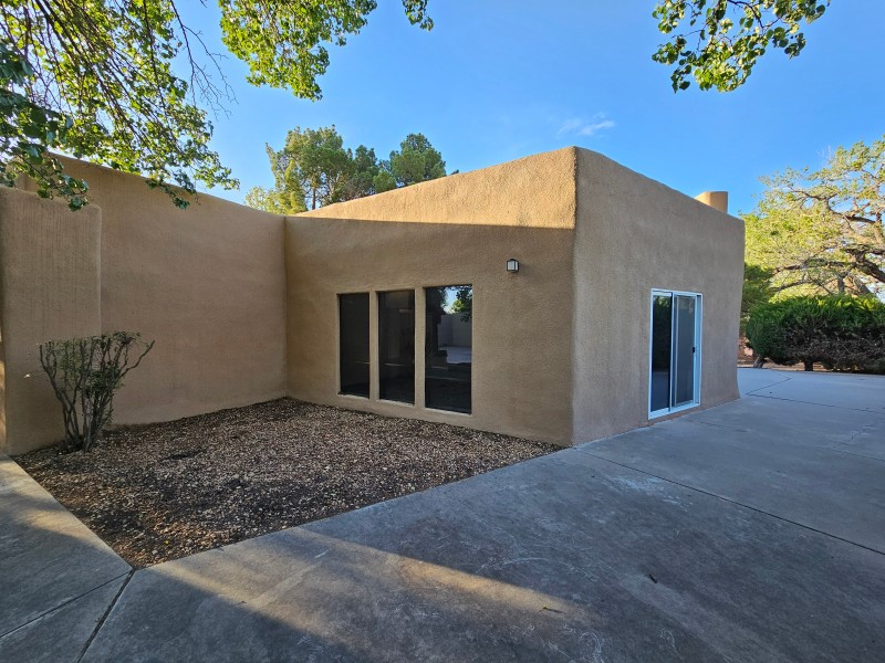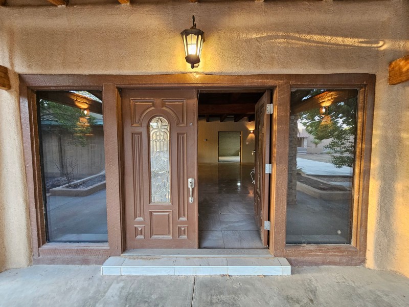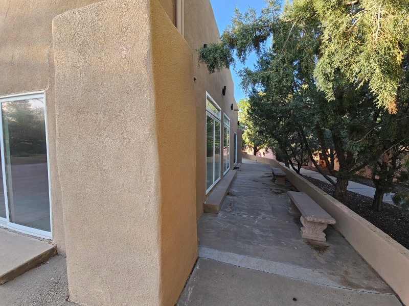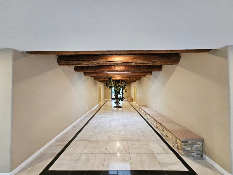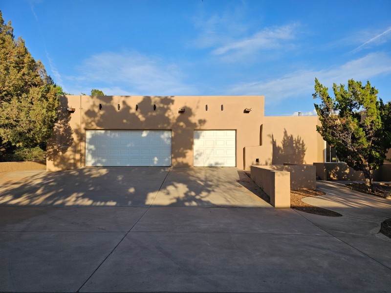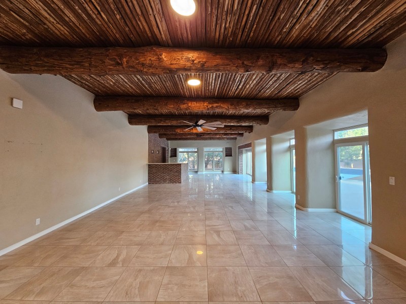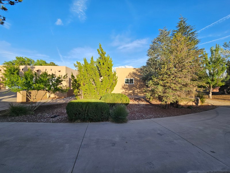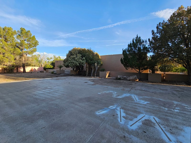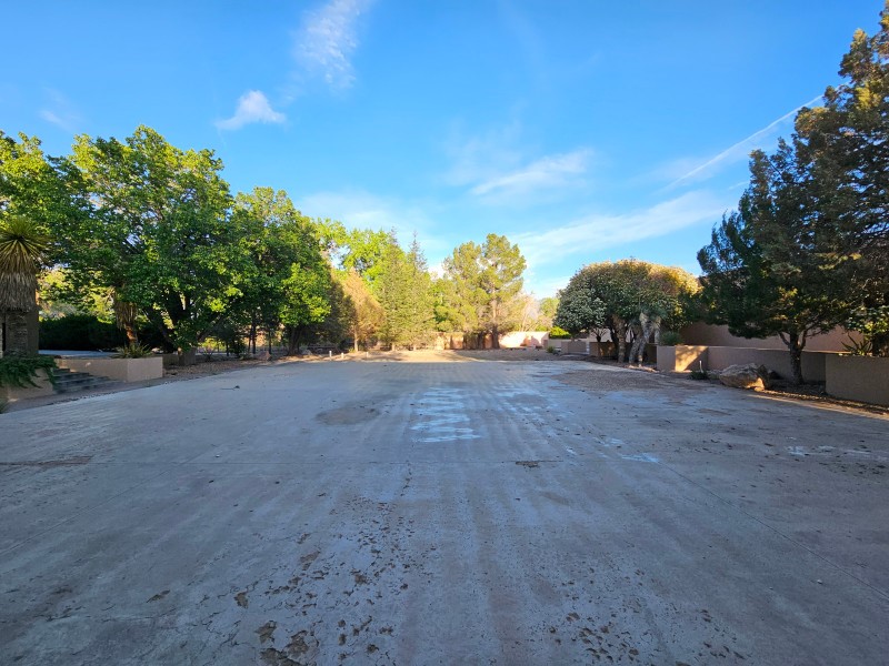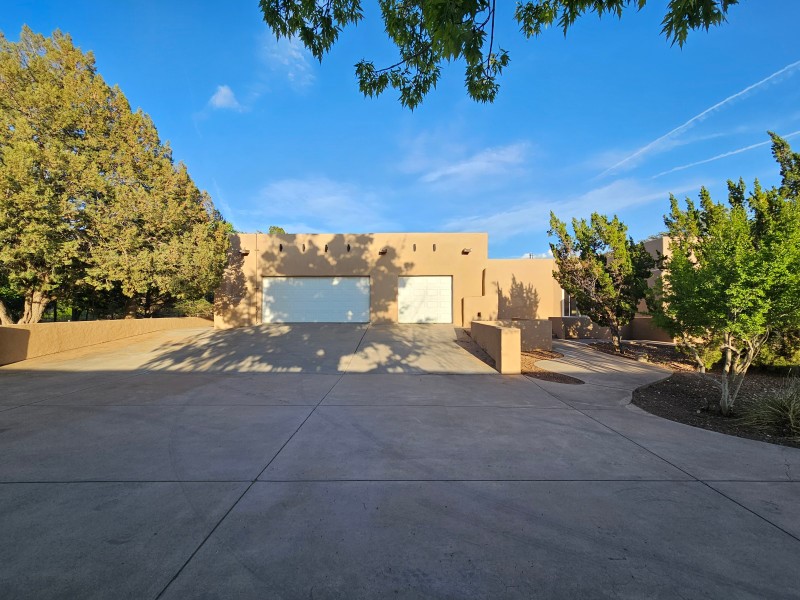 Located behind secure gates on 2.51 acres, this stunning contemporary estate offers both privacy and convenient access to the Corrales Bosque and the Rio Grande River. A striking entry atrium welcomes you with an indoor garden and expansive skylight, filling the space with natural light. The main living area is designed for both comfort and entertaining, featuring a built-in bar and a beautifully crafted wood-beamed ceiling with custom detailing. The kitchen is well-appointed with custom cabinetry, sleek countertops, a commercial-grade range, and an oversized island with seating and additional storage.The spacious owner's suite includes a cozy fireplace and a luxurious en-suite bathroom with dual sinks, a freestanding tub seamlessly integrated with the shower, and an impressive walk-in closet. A detached casita offers excellent flexibility with two bedrooms and two bathrooms--ideal for guests or extended living. The property also includes a pool (in need of repair), adding to its potential as a private retreat. This unique property is a must-see for those seeking space, style, and privacy in a prime location.