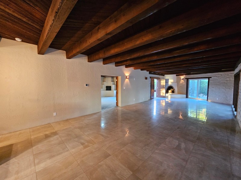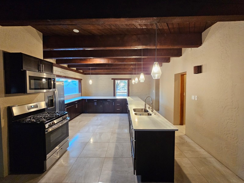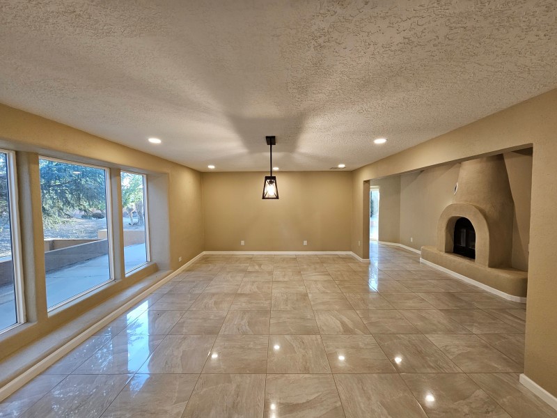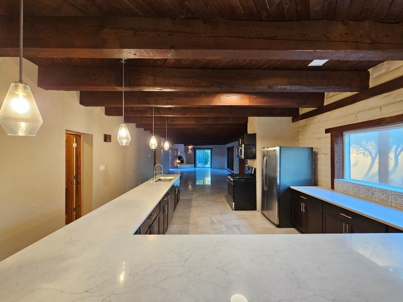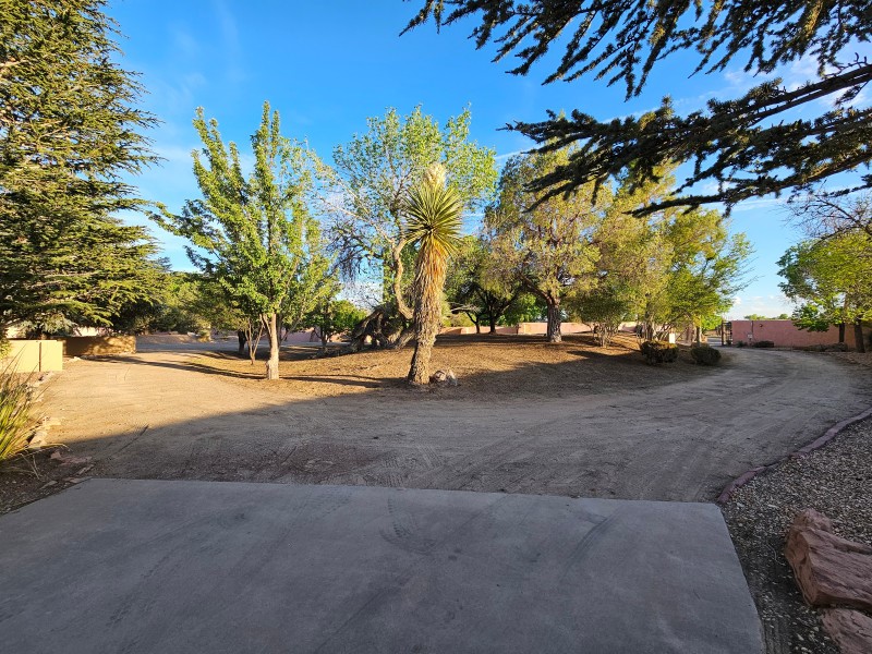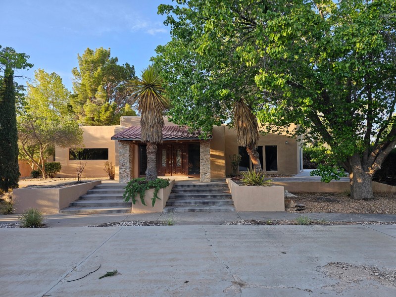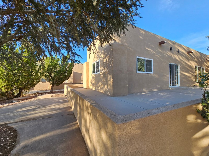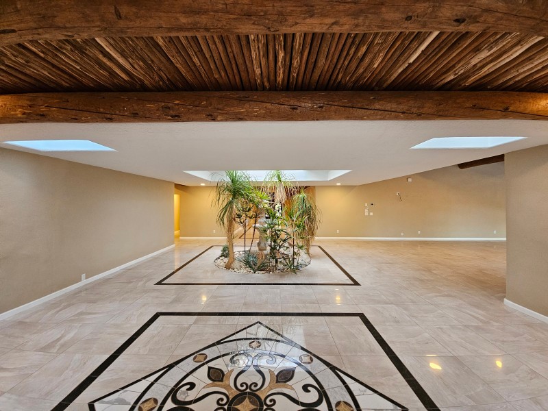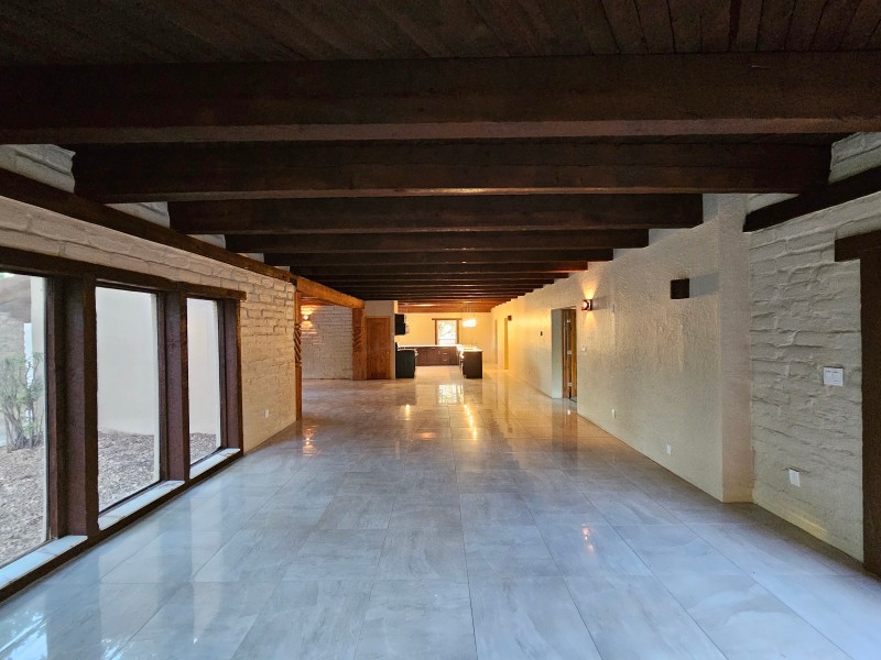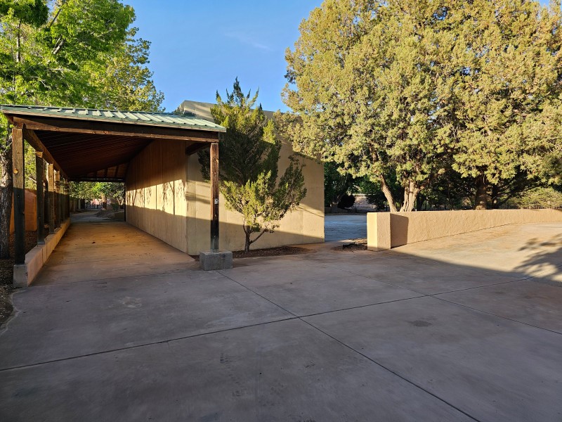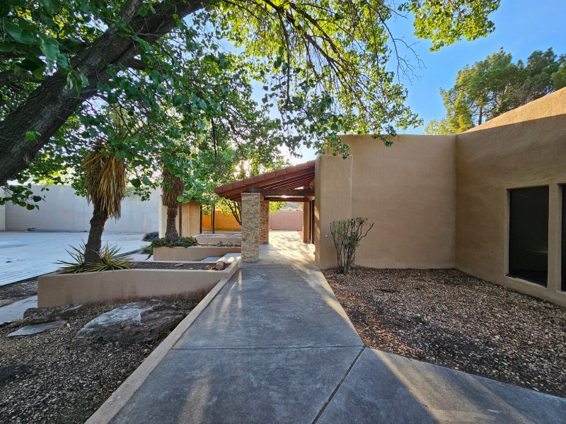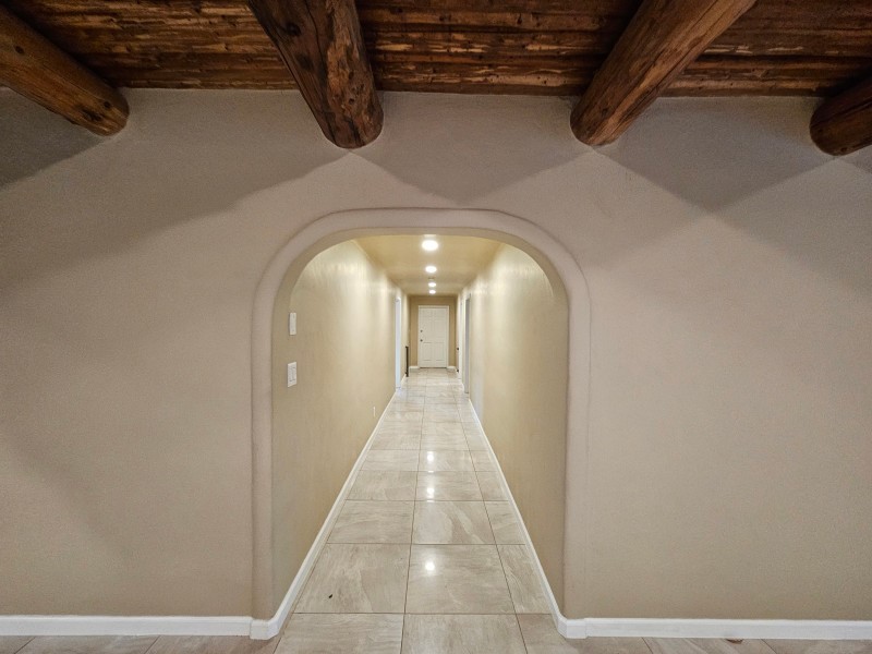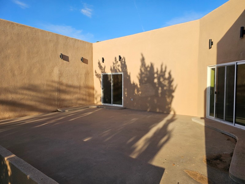 Located behind secure gates on 2.51 acres, this stunning contemporary estate offers both privacy and convenient access to the Corrales Bosque and the Rio Grande River. A striking entry atrium welcomes you with an indoor garden and expansive skylight, filling the space with natural light. The main living area is designed for both comfort and entertaining, featuring a built-in bar and a beautifully crafted wood-beamed ceiling with custom detailing. The kitchen is well-appointed with custom cabinetry, sleek countertops, a commercial-grade range, and an oversized island with seating and additional storage.The spacious owner's suite includes a cozy fireplace and a luxurious en-suite bathroom with dual sinks, a freestanding tub seamlessly integrated with the shower, and an impressive walk-in closet. A detached casita offers excellent flexibility with two bedrooms and two bathrooms--ideal for guests or extended living. The property also includes a pool (in need of repair), adding to its potential as a private retreat. This unique property is a must-see for those seeking space, style, and privacy in a prime location.