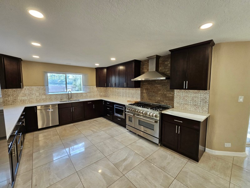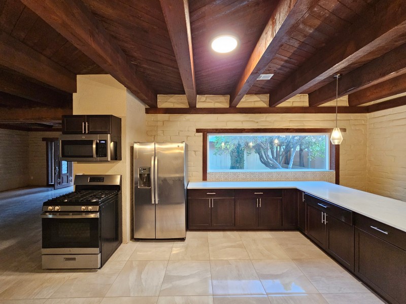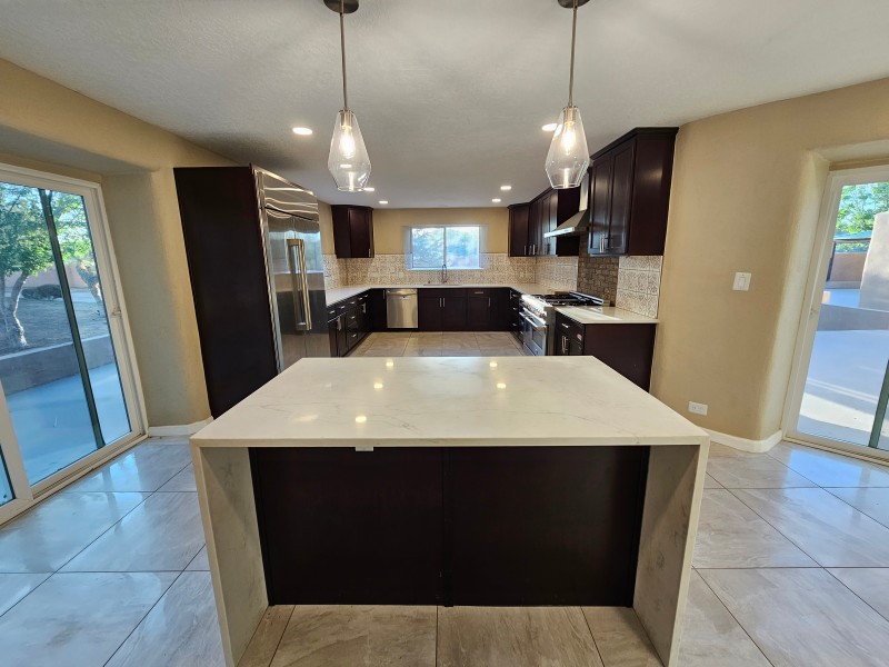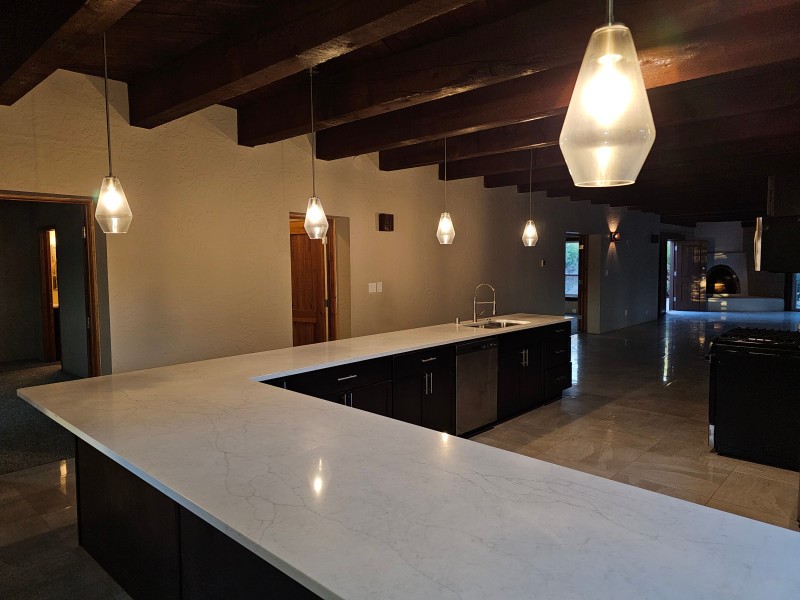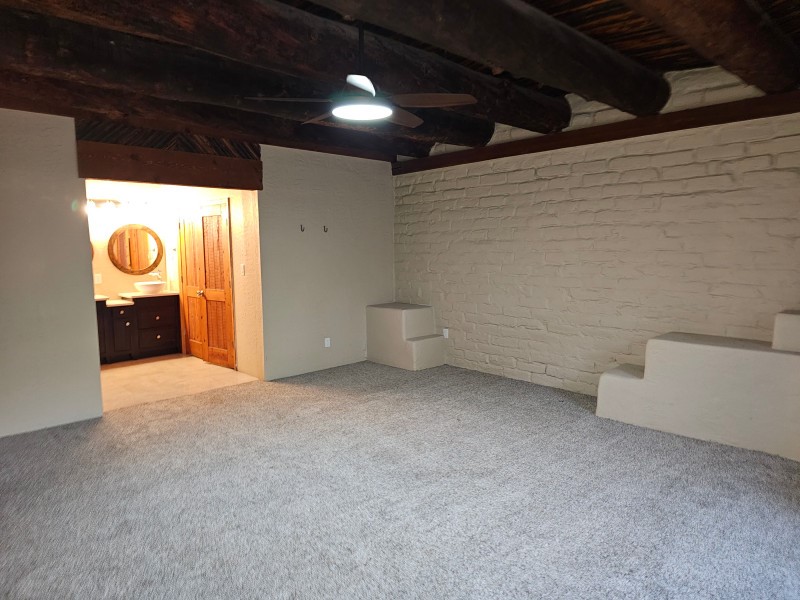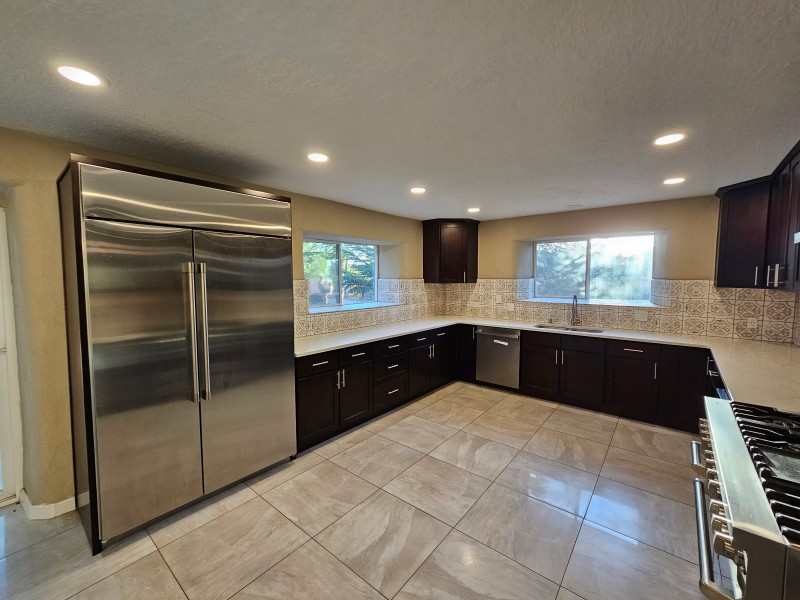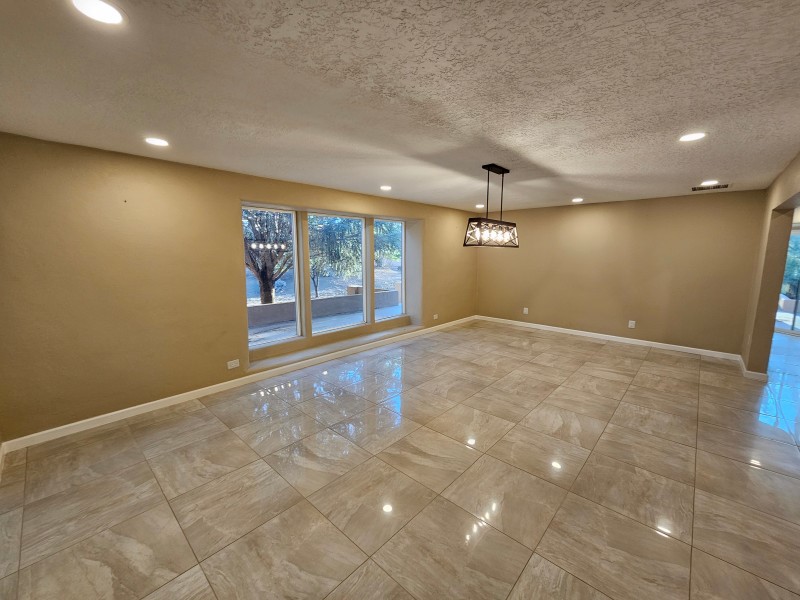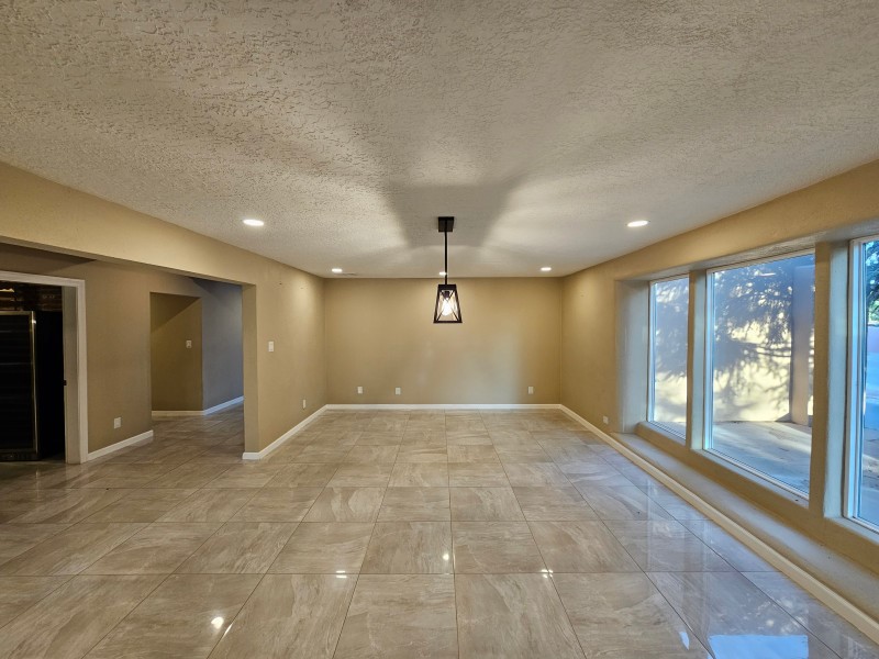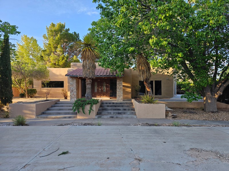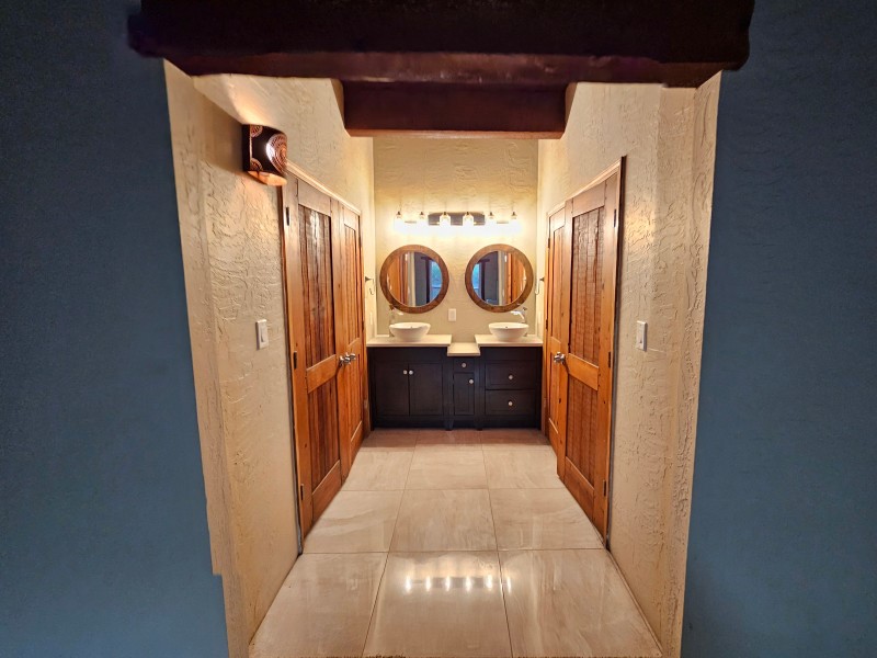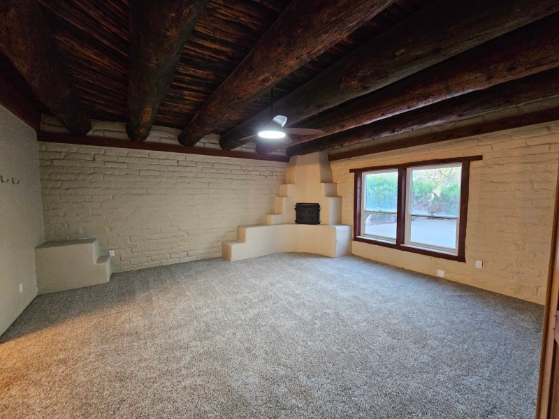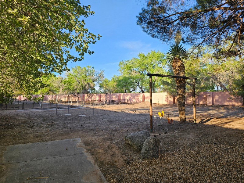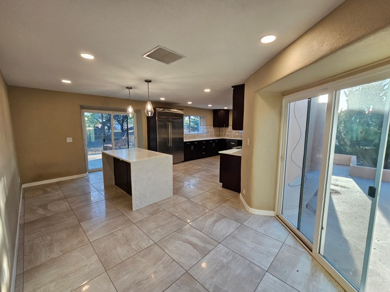 Located behind secure gates on 2.51 acres, this stunning contemporary estate offers both privacy and convenient access to the Corrales Bosque and the Rio Grande River. A striking entry atrium welcomes you with an indoor garden and expansive skylight, filling the space with natural light. The main living area is designed for both comfort and entertaining, featuring a built-in bar and a beautifully crafted wood-beamed ceiling with custom detailing. The kitchen is well-appointed with custom cabinetry, sleek countertops, a commercial-grade range, and an oversized island with seating and additional storage.The spacious owner's suite includes a cozy fireplace and a luxurious en-suite bathroom with dual sinks, a freestanding tub seamlessly integrated with the shower, and an impressive walk-in closet. A detached casita offers excellent flexibility with two bedrooms and two bathrooms--ideal for guests or extended living. The property also includes a pool (in need of repair), adding to its potential as a private retreat. This unique property is a must-see for those seeking space, style, and privacy in a prime location.